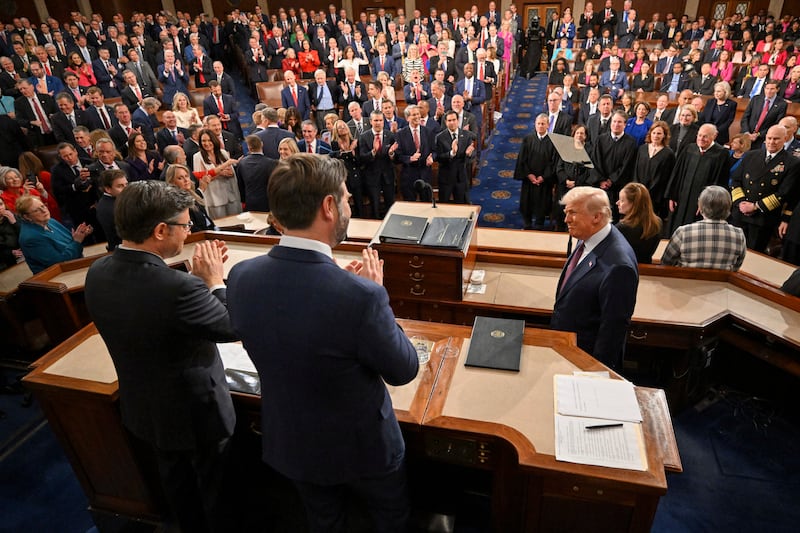 When Trump entered the House chamber, Republicans were quick to give a standing ovation and roaring applause — while most Democrats remained seated. Trump was escorted by a procession of congressional leaders, including Rep. Blake Moore, R-Utah, who serves as the vice chair of the House GOP Conference.