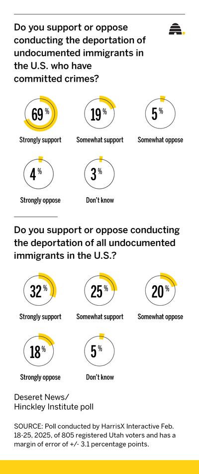 - A new Deseret News poll found that 89% of Utahns support the deportation of unauthorized immigrants who commit crimes.