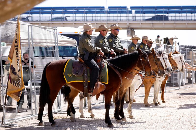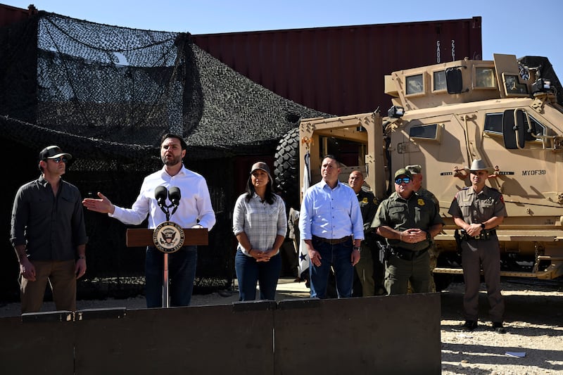 Defense Secretary Pete Hegseth and National Intelligence Director Tulsi Gabbard accompanied the vice president at the press conference and the helicopter tour around Eagle Pass.