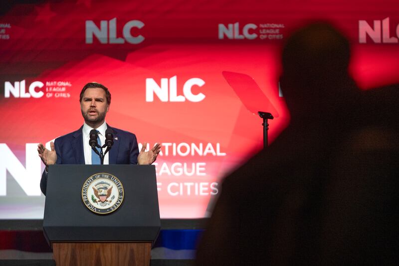 Vice President JD Vance spoke to thousands of local government leaders at the National League of Cities conference in Washington, D.C., Monday afternoon, where he called on them to follow new federal law aimed at curbing illegal immigration.