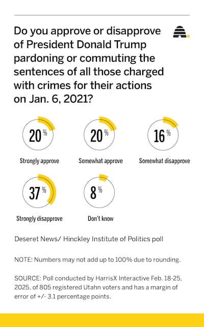 More than half of Utah voters, or 53%, said they disapprove of Trump pardoning or commuting the sentences of the rioters.