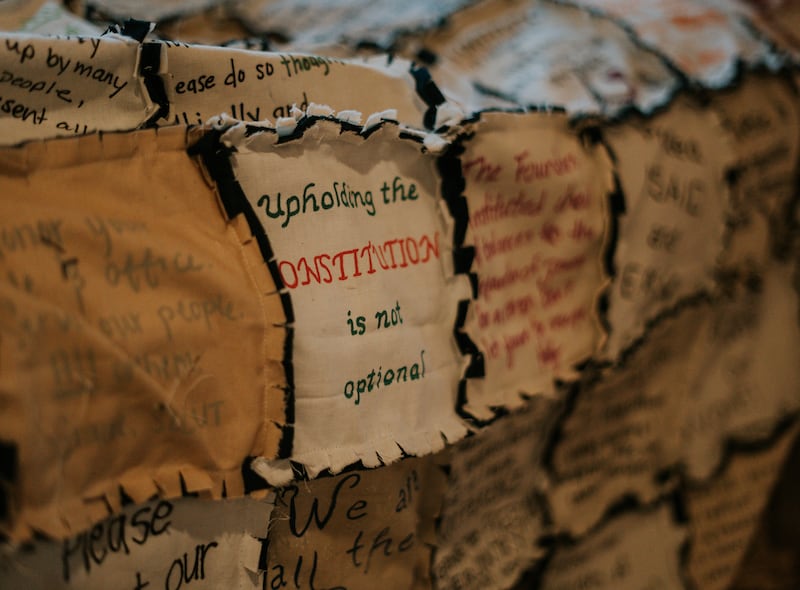 There was nothing coded about the messages on the new quilt squares. “Liberty and due process for all,” “Checks and balances are there for a reason,” and “Give us your tired, your poor, your huddled masses ...”