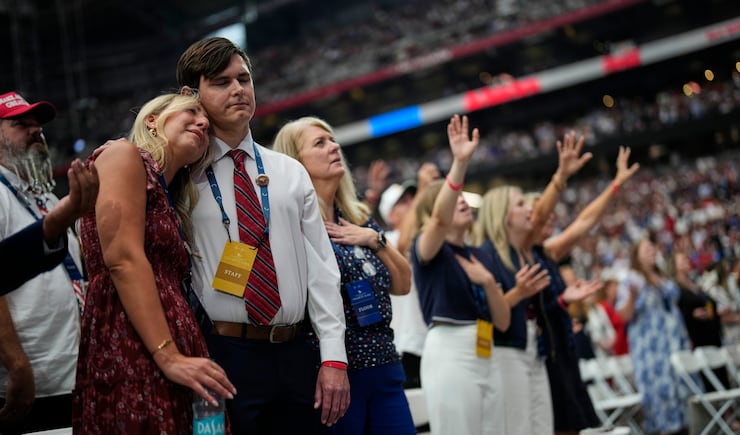 “I have talked more about Jesus Christ in the past two weeks than I have my entire life,” the vice president added. The entire stadium rose up.