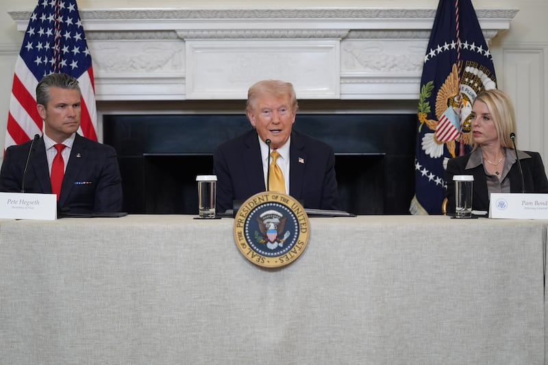 Noem, Bondi, deputy chief of staff and homeland security adviser Stephen Miller, Deputy Attorney General Todd Blanche, Defense Secretary Pete Hegseth, FBI Director Kash Patel and Director of National Intelligence Tulsi Gabbard all joined Trump for the roundtable and praised his efforts to crack down on cartel-related crime.
