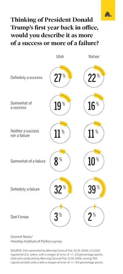 Residents of the Beehive State were more likely to rate the first year of Trump’s second term as “definitely” or “somewhat” of a success than “definitely” or “somewhat” a failure.