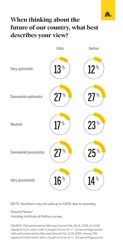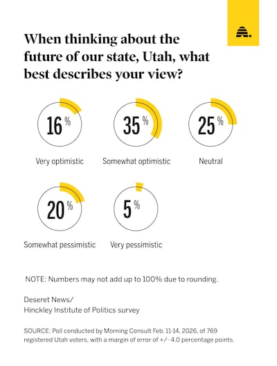Twenty-five percent of Utahns said they are very or somewhat pessimistic about the future of their state, while another 25% say they are neutral on the question.