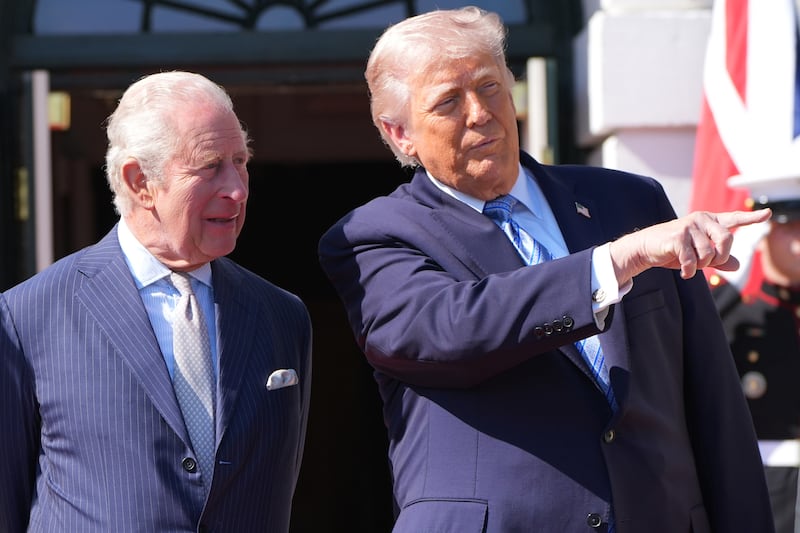 President Donald Trump and Britain's King Charles III talk at the White House, Monday, April 27, 2026, in Washington. | Alex Brandon, Associated Press