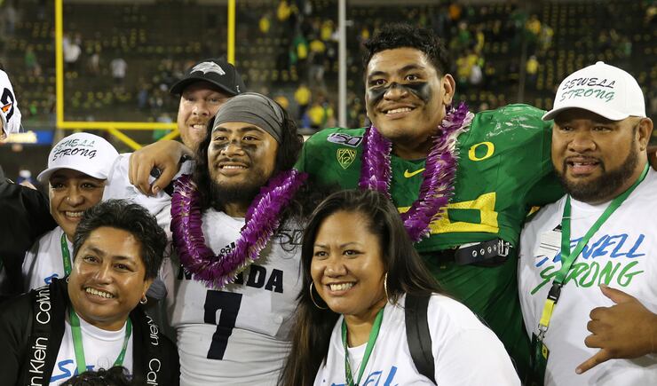 Sewell finished with four tackles in the Pac-12 Championship Game. After the game, he and his brother Penei Sewell — Oregon’s star offensive linemen — shared a moment postgame. The two brothers embraced on the field at Levi’s Stadium as Penei Sewell comforted his brother after a tough loss.