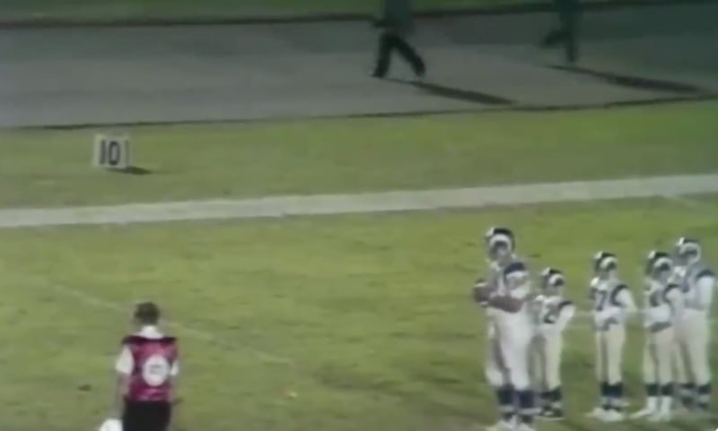 Sports Illustrated wrote about the story behind the old video clip and that year’s competition. One fun revelation: The organizers gave the boys youth-sized Los Angeles Rams jerseys to wear during the event, which took place at halftime of the Redskins-Rams game at the L.A. Coliseum, but they couldn’t find one that fit Reid. He was reportedly 6-foot-2, 220 pounds as a 13-year-old. Eventually, Reid had to squeeze into the actual jersey of Rams starting running back Les Josephson, who was 6-1, 207.