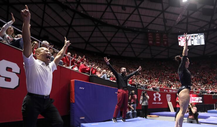 SALT LAKE CITY — Three vaults into Friday night’s Pac-12 opener against Arizona State, the usually stalwart Utah gymnastics team — ranked No. 5 in the nation — looked like significantly less than the sum of its parts. Back-to-back-to-back scores 9.75 or lower had the announced crowd of 15,558 that filled the Huntsman Center on the campus of the University of Utah in almost a stunned silence.