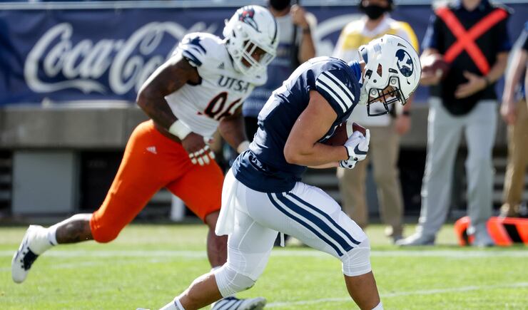 UTSA quickly scored its own touchdown to make it a seven-point game with just over a minute to play. BYU recovered an onside kick and held on after the Roadrunners were flagged for a roughing the punter penalty with 15 seconds left following a BYU three-and-out, and the Cougars knelt down to wrap up the victory.