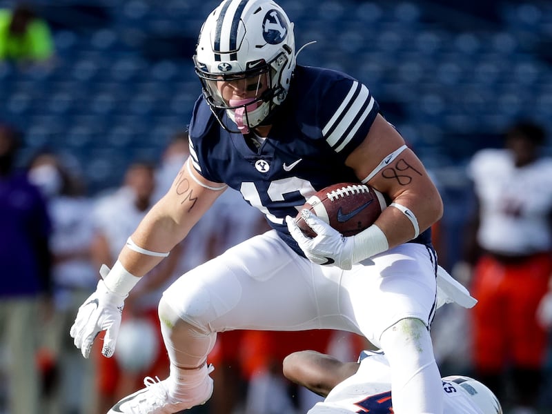 Most recently, in BYU’s 43-26 win over Houston on Friday, Wake hurdled a defender in the third quarter on a 19-yard reception from quarterback Zach Wilson, after which ESPN play-by-play announcer Jason Benetti said, “He’s well known for it and he goes high once more,” and then told of how the hurdle has long been in Wake’s repertoire.