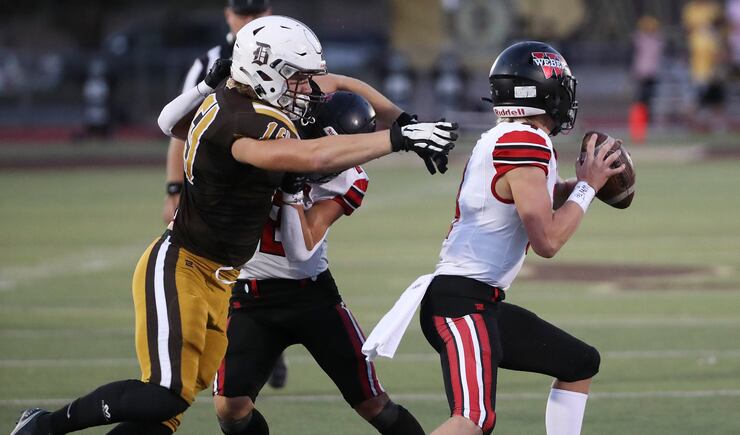 Box Elder’s Parker Buchanan threw for two touchdowns, one each to River Olsen and Caron Arnold, as the Bees picked up the victory in a back-and-forth battle against Woods Cross.