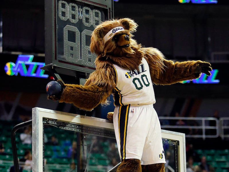 With Election Day about 11⁄2 weeks away, Utah Jazz producer Jeremy Brunner shared an old video on Twitter Friday of the Utah Jazz Bear mascot literally slam dunking over Donald Trump.