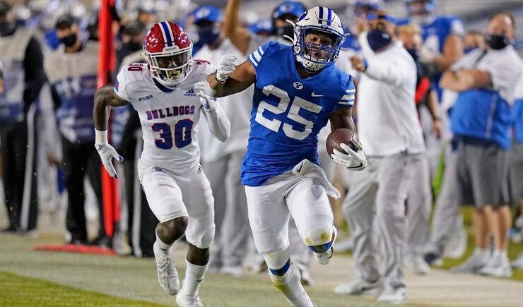 The Cougars put up 513 yards of total offense, an average of 8 yards per play, and were perfect in the red zone, scoring touchdowns on all four trips inside the La Tech 20. That’s been a problem in recent years for BYU, but so far in 2020, the veteran Cougars are cashing in once they reach the red zone. BYU was also 6 of 10 on third down, which helped the Cougars score on six straight possessions, including five touchdowns.