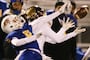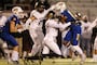 Maple Mountain’s offense screeched to a halt without injured quarterback Tyler Nelson as two backup passers failed to register a completion until midway through the second quarter and combined for only 11 completions on the night. Orem defensive end Joshua Singh terrorized the Maple Mountain backfield all evening on the way to four sacks.