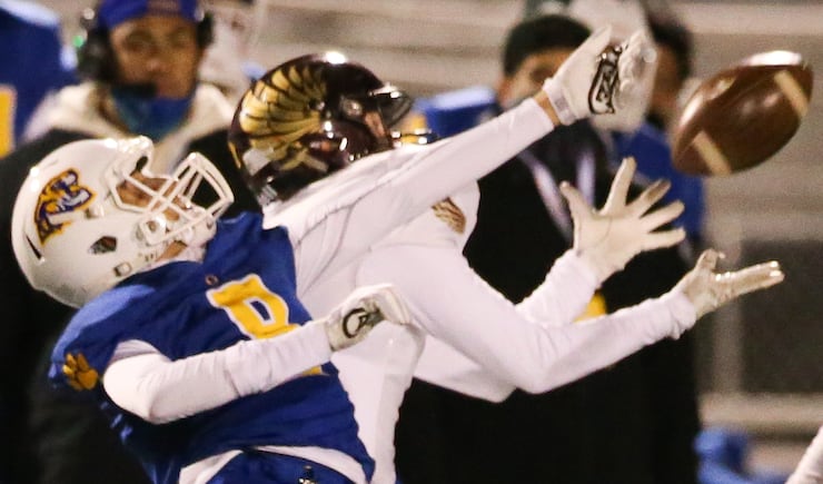 Maple Mountain’s lone highlight of the first half came via a Bryson Bliss interception, but the Golden Eagles gave it right back on the following play with a Gene Ho-Ching pick to Orem’s Jaxon Beckstrom.