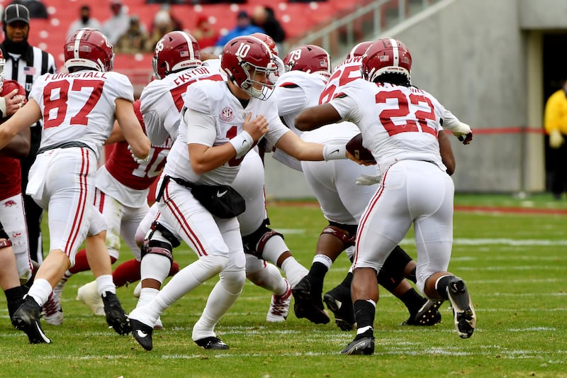 Jones was largely not needed in Alabama’s blowout win over Arkansas. Jones completed 24 of 29 passes for a season-low 208 yards and zero touchdowns in the victory.