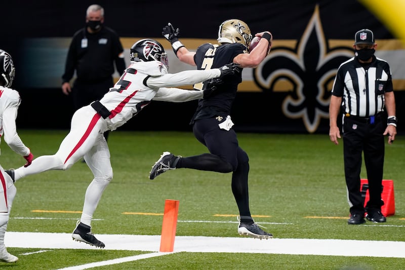 Taysom Hill twice converted third-and-1 runs to keep the drive going, and the clock running, as the Saints ran out a lot of clock before punting the ball back to Atlanta in the final minute.