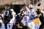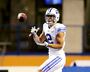 Zach Wilson shows off his arm strength on a scoring drive to start the second half, hitting Dax Milne for a 38-yard pass on third down, then throwing 38 yards to Gunner Romney on the next play.