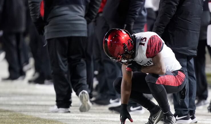 On a short field after Rex’s fumble, San Diego State drove 33 yards for a TD, but not before cashing in on a fake field goal on fourth-and-1. Two plays later, Elijah Kothe made a spectacular diving catch in the end zone to give the visitors a 14-7 lead.