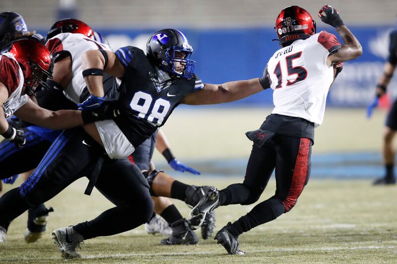 BYU missed the bruising, tackle-breaking Allgeier, but Lopini Katoa stepped up with 83 rushing yards on 13 carries for a 6.4-yard average against SDSU’s always-tough rush defense.
