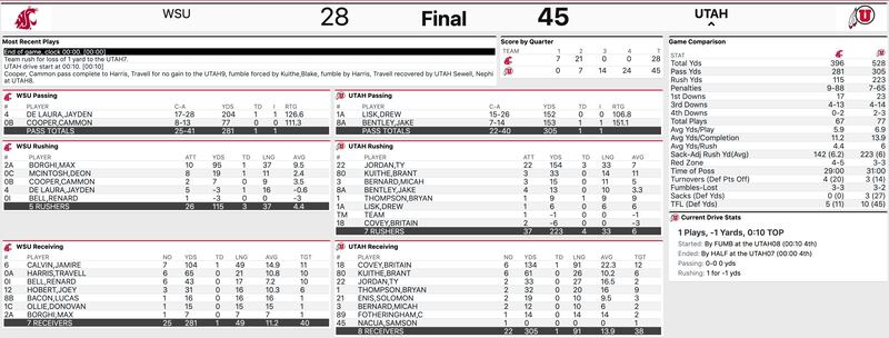 Washington State bullies Utah on that drive. Max Borghi rushed for 37 yards on third down, then Deon McIntosh finished the 88-yard drive with an 11-yard touchdown run. Utah’s defensive line was not able to get any pressure on the quarterback and couldn’t stop the run.