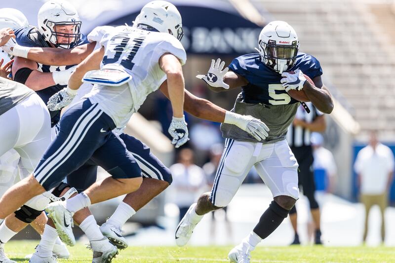 Three RBs who were injured or recovering from surgery in 2020 — sophomores Sione Finau and Jackson McChesney and junior college transfer Hinckley Ropati — will push the two co-starters for totes, along with talented newcomer Miles Davis, if he stays at that position and doesn’t return to receiver.