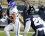 Peasley — one game after making several key plays in last week’s 41-27 win over New Mexico — had a few positive moments against the Falcons, but finished the game completing 17 of 32 passes for 123 yards, one touchdown and two interceptions, one of which came on the final play of the first half when USU had the ball at the Air Force 33. He led the Aggies in rushing, gaining 53 yards on eight carries, including a 14-yarder on the touchdown drive and a 27-yard carry later to convert a third down.
