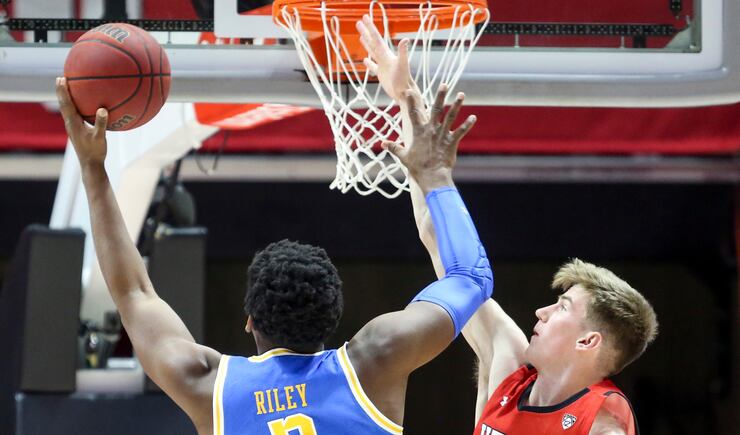 The Utes lost two baskets on layups that hit the glass before being blocked but weren’t called goaltending, and a foul call on Battin late in the first half that could have gone the other way earned Krystkowiak a technical foul and gave UCLA two points.