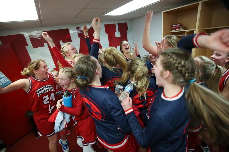 “It’s crazy, and I’m still in shock, honestly,” said Springville guard Kayla Jackson, who led her team in scoring with 11 points. “I don’t think it’s really sunk in yet, but we’re not done. We have one more game.”