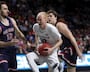 Ford, who scored 42 points in last Saturday’s double-overtime thriller against Pepperdine in the quarterfinals, took the inbounds pass in the backcourt and then drove toward the basket while being defended by guard Alex Barcello.