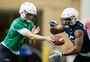Head coach Kalani Sitake and offensive coordinator Jeff Grimes — sporting a sling on his right arm after having rotator cuff surgery — both said the reps were divided evenly as the first of 15 practices went without a hitch.