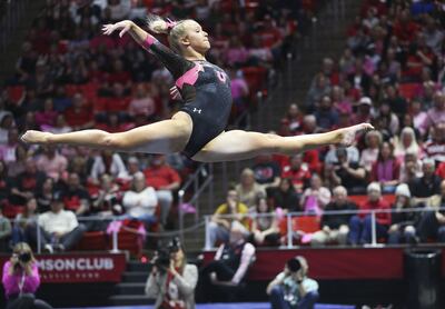 It took a couple of meets, but by the end of the year Soloski had become one of Utah’s best gymnasts. Starting with the Arizona meet, she scored a 9.90 or better on floor in five consecutive competitions, including three scores of 9.95.