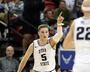 Greg Milton III came off the bench to score four straight points and get Wyoming within a field goal twice, then Foster — a 22% 3-point shooter — hit three straight long-range jumpers to get Wyoming within a point at 58-57. Merrill’s three righted the Aggies with 7:30 left; a few minutes later, USU’s student section chanted for their hero as the Aggies began preparing for their second-straight trip to the title game.