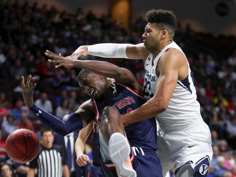 BYU has eight turnovers, including one from Childs that led to a Saint Mary’s 3-pointer from Malik Fitts to make it 19-17. Childs has just collected his fourth rebound of the game to tie Kyle Collinsworth as BYU’s all-time leading rebounder, with 1,047 for his career.