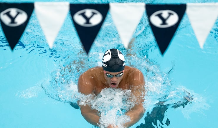 Last November, Dominguez broke a 21-year-old BYU record — the longest-standing BYU swim record in the books — with a time of 1 minute, 55.97 seconds in the 200-yard breaststroke at the Missouri Invite. He also is the school record-holder in the 100-yard breaststroke (52.90).