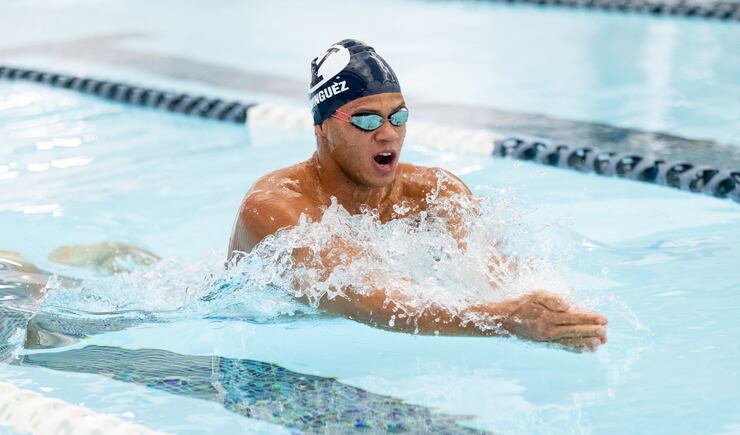 Dominguez did just that; As a freshman at BYU last April, he won the 50-meter and 100-meter breaststroke titles at the 2019 Dominican Swimming Federation National Swimming Championships in Santo Domingo, D.R. He was second in the 50-meter freestyle.
