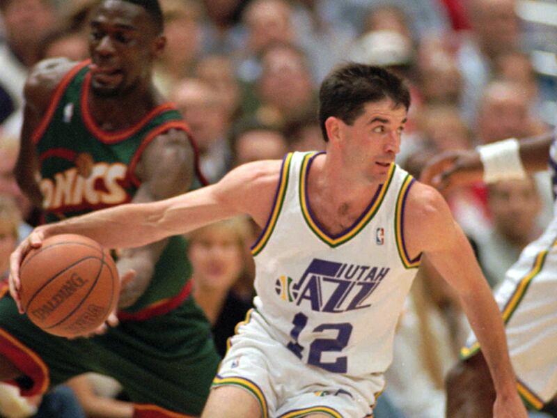 Seattle took a 2-0 lead against Utah in the series and then led 3-1 before the Jazz eked out a 98-95 overtime win in Game 5. Utah then won Game 6 by 35 (the Sonics had won Game 1 by 30), setting up a Game 7 in Seattle.