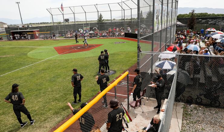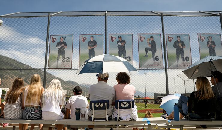 On Tuesday, fans filled up the bleachers at Lone Peak High School, with many others sitting on lawn chairs and blankets up and down the baselines.