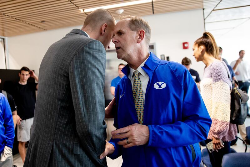 Holmoe, who took over as BYU’s AD in 2005, received an A-minus for his two football head coaching hires — Bronco Mendenhall (2005-15) and Kalani Sitake (2016-present) — and a B-plus for his two men’s basketball coaching hires — Dave Rose (2005-19) and Mark Pope (2019-present).