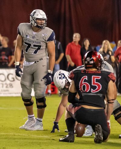 Thanks to his play in a close season-opening loss at Wake Forest, as well as during wins over Stony Brook and San Diego State, praise came early and often for Koch. The Eastvale, California, native, described in USU’s media guide as “long and athletic” — he is listed at 6-foot-6, 290 pounds — appeared to be on a path to stardom.