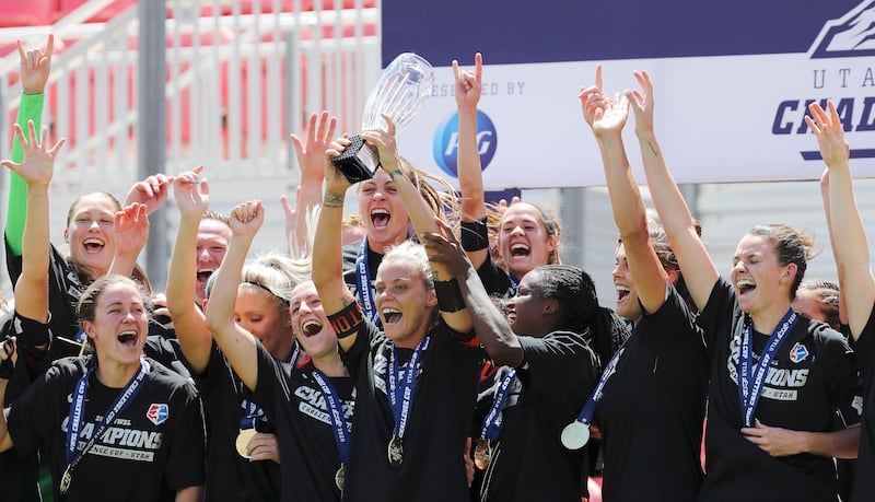 SANDY — Just before Rachel Daly and Shea Groom met with the press via Zoom on Sunday after their Houston Dash beat the Chicago Red Stars 2-0 at Rio Tinto Stadium to win the monthlong National Women’s Soccer League’s Challenge Cup, they and teammates shared a brief moment with Utah Royals FC owner Dell Loy Hansen.