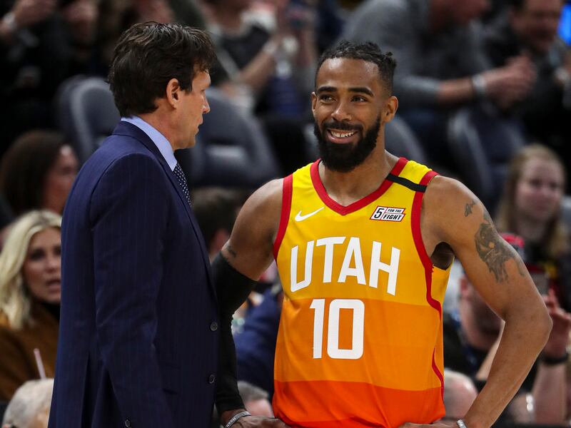 In short, Jazz basketball was happening for the first time in four months, at least the way point guard Mike Conley saw the opening portion of the team’s practice Thursday inside the NBA’s “bubble” at the Walt Disney World Resort in Orlando — its first time all together on the court since March — as head coach Quin Snyder allowed the group to just play for a while.