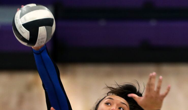 Pleasant Grove outside hitter Mia Peterson, who played a big part in the Vikings’ opening night win, likes Hawkey’s coaching style.