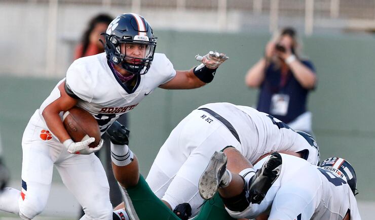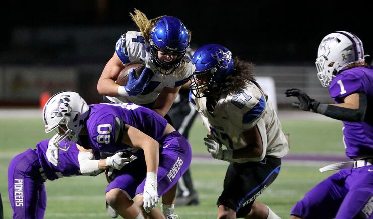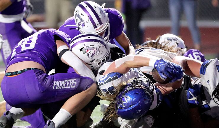 Bear River jumped out to a quick lead, Ridgeline raced ahead by halftime and then Bear River nearly battled back to force overtime, as it was stopped at the 1-yard line on the final play of the game in a wild Region 11 clash. Kaden Cox passed for four touchdowns to lead the Riverhawks.