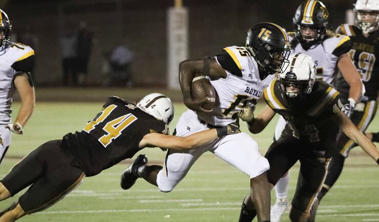 ROY 48, DAVIS 47: Roy and Davis played what could be called a Friday Night Classic, with the Royals coming out ahead on a last-minute score. With 14 seconds remaining, Roy quarterback Parker Kingston found Ethan Ecker for a 20-yard touchdown, after which running back Cade Harris converted the two-point conversion to give the Royals the win. Kingston threw for two touchdowns and rushed for three more to lead the way for Roy, while Davis was led by quarterback Chance Trujillo, who finished with six total touchdowns, four through the air and two on the ground. | Full story
