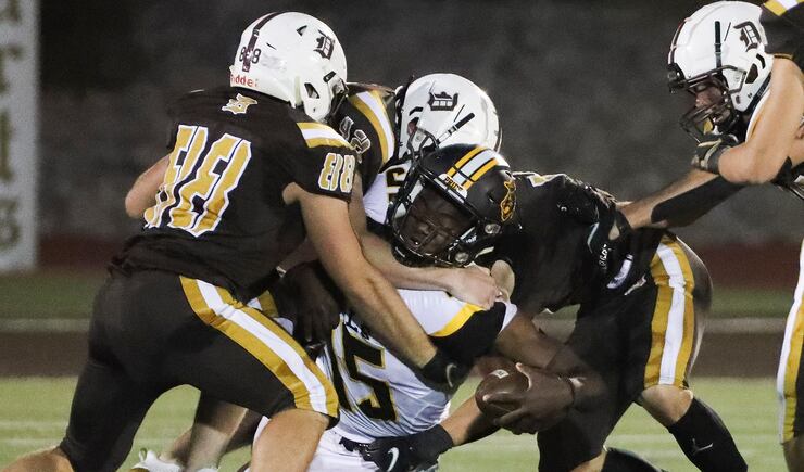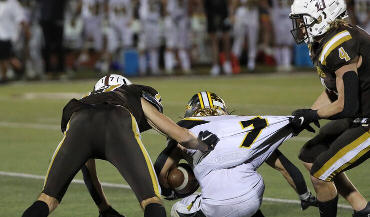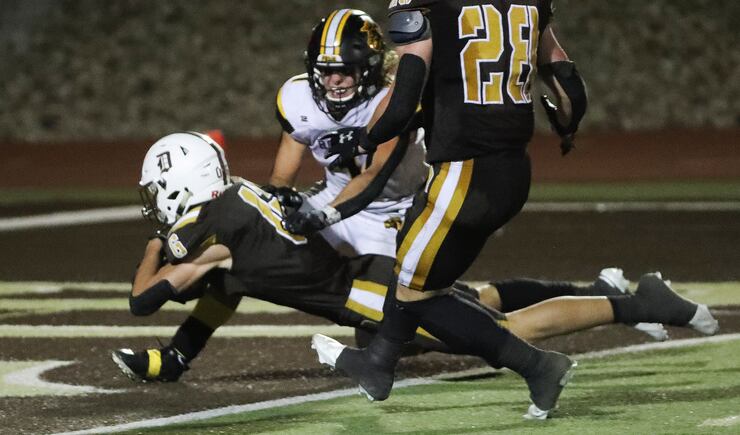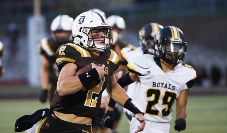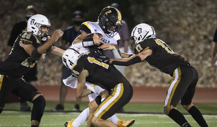 SNOW CANYON 28, DESERT HILLS 21: Powered by a strong rushing performance from Bretton Stone, Snow Canyon eked out the victory over Desert Hills to remain undefeated. Stone rushed for 163 yards and two touchdowns and caught the game-winning 32-yard touchdown pass from quarterback Landon Frei with just under two minutes remaining in the game.