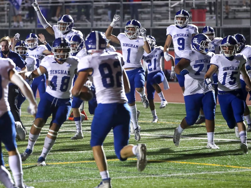 “There was a point in this game that I wondered if our players were going to roll over and quit or step up and give us a chance. They decided to step up and compete which gave us a chance,” said Bingham coach Dave Peck.