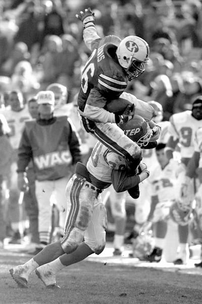 Current BYU athletics administrator was known for hurdling over defensive backs after walking on the team. He finished with 111 catches for 1,376 yards and 10 TDs and had a lengthy NFL career with the Philadelphia Eagles. Made it to three Pro Bowls. Also considered: Carlos Nuno, Reed Hornung.